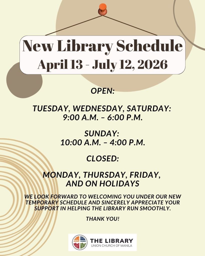 The Union Church of Manila will implement a temporary 4-day workweek from April 13 to July 12, 2026, in support of energy conservation amid the current energy situation.